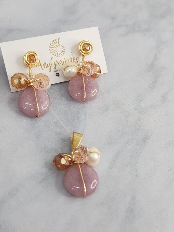Juego espigas piedras naturales y cristales con cadena de acero de 45cm