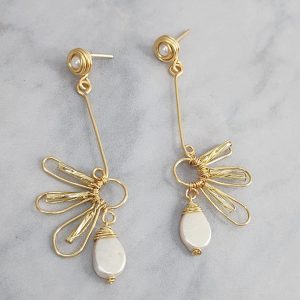 Aretes candonga mini con perla. Tejido Bohío